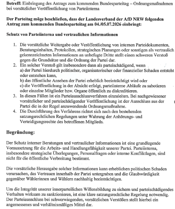 Zu 3. : Hier ist er wieder, der weiße Schimmel: “In diesen Fällen ist ein Parteiausschlussverfahren einzuleiten. Bei nachgewiesener vorsätzlicher und parteischädigenden Veröffentlichung ist der Ausschluss aus der Partei die in der Regel anzuwendende Ordnungsmaßnahme.“ Diese sprachliche Plumpheit spricht für sich.